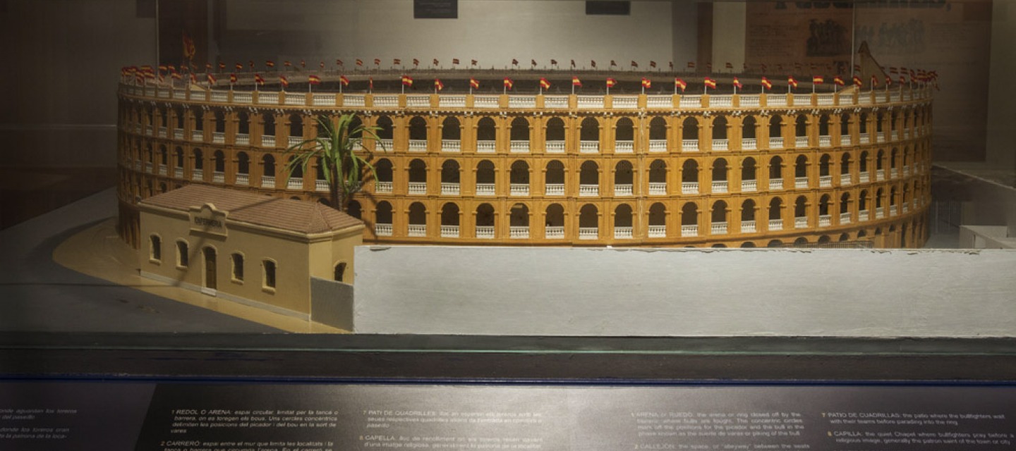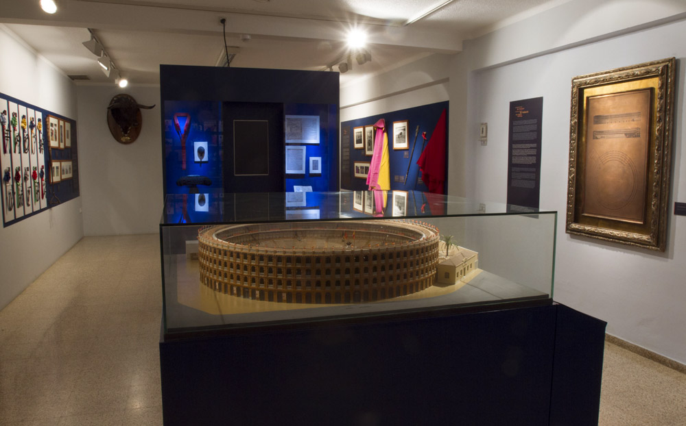 S’observa una maqueta de la plaça tal com és definitivament després de l’última reforma de l’any 2010, els plànols de les graderies i les tribunes i el gran cartell Toros de Muerte, amb el qual es va inaugurar el recinte el 20 de juny del 1859.