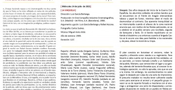 Año García Berlanga: Proyección en la Plaza de toros de La vaquilla el 14 de julio y de Bienvenido, Mister Marshall el 15 de julio.